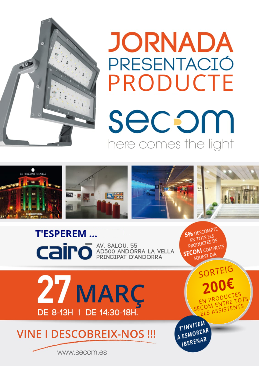 A més, aprofita el 5% de descompte que t'oferirem en productes de la marca SECOM, només disponible el dia 27. I per si no n'hi hagués prou, t'invitem a esmorzar!