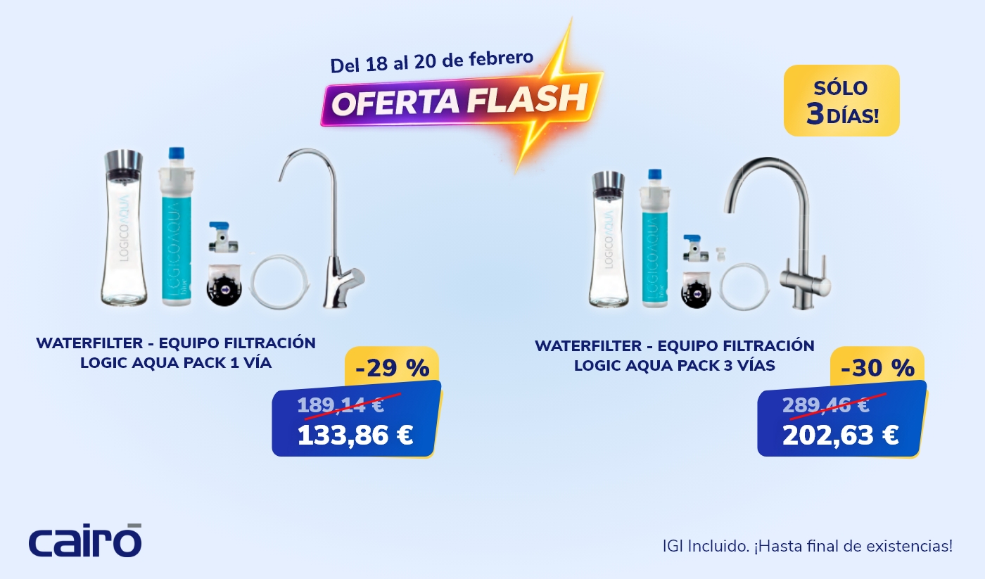 En Cairó apostamos por soluciones que mejoran tu día a día combinando tecnología, salud y sostenibilidad. Los sistemas de filtración Waterfilter Logic Aqua permiten disfrutar de agua de calidad directamente desde el grifo, reduciendo impurezas y mejorando el sabor, sin necesidad de comprar agua embotellada.
